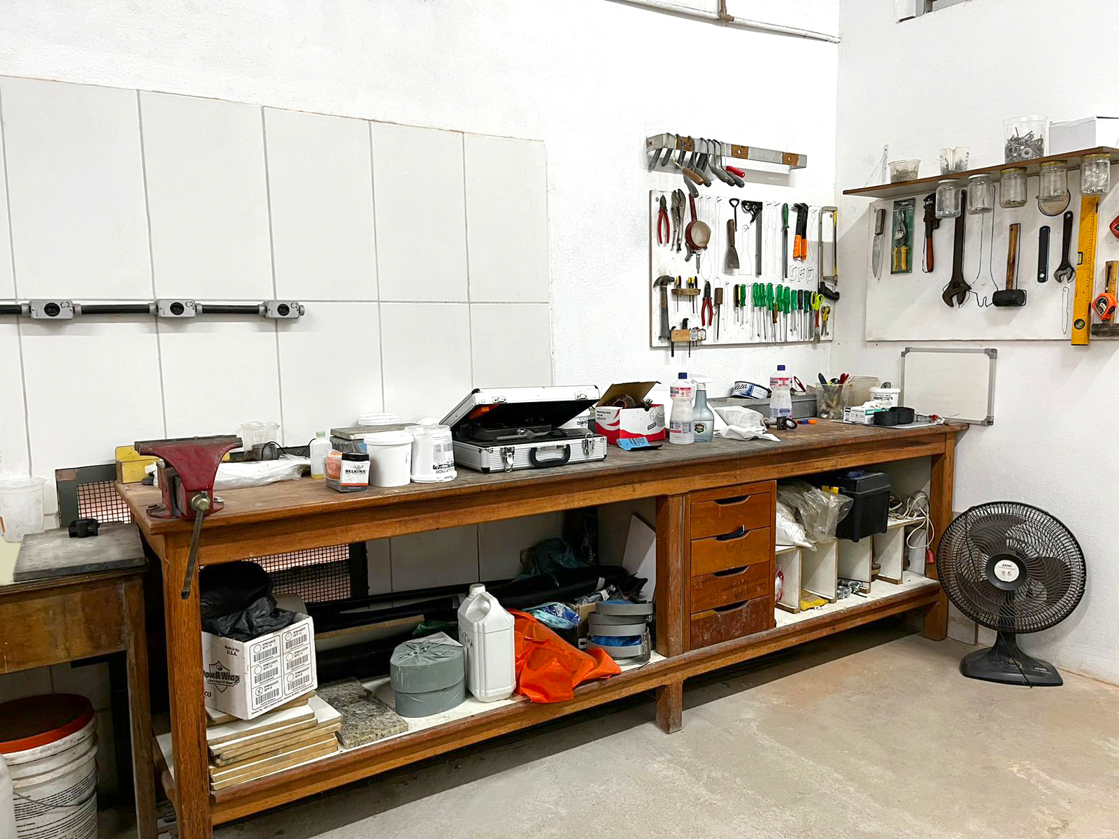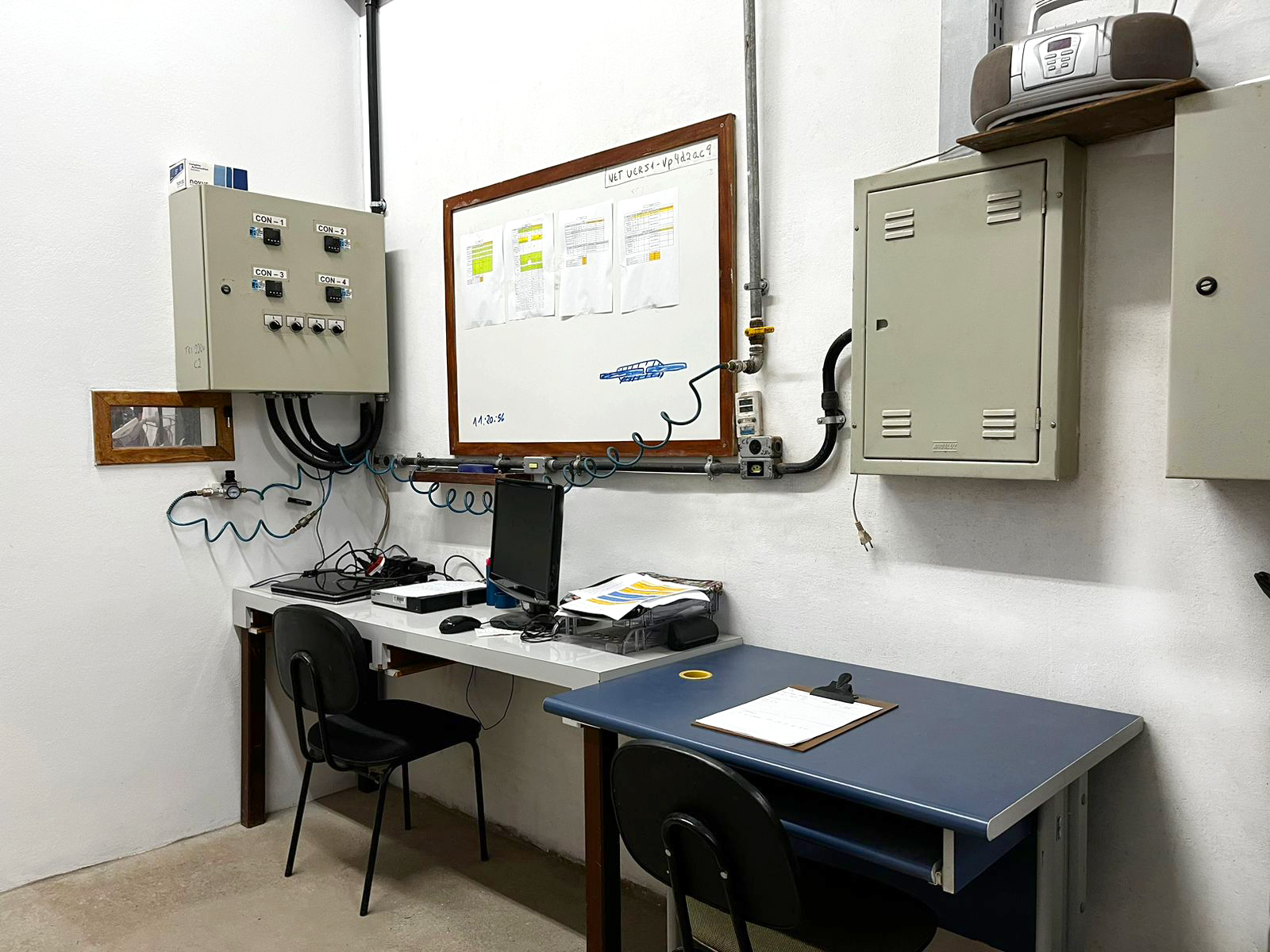 > Oficina mecânica com: máquinas operatrizes para confecção de Cps, soldas, vários tipos de ferramentas mecânicas hidráulicas e pneumáticas, máquina de fluência para juntas coladas para 10Cps (projeto próprio, única no país),